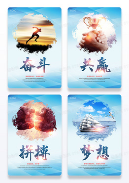 简约风企业标语套图水墨画装饰企业文化挂画