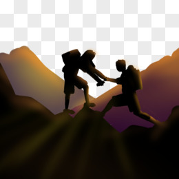 手绘双人登峰互助剪影装饰素材