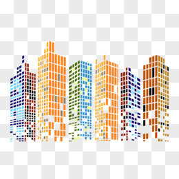 手绘渐变红色抽象点状城市免抠效果素材