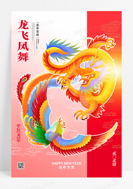 创意线描龙飞凤舞龙年海报