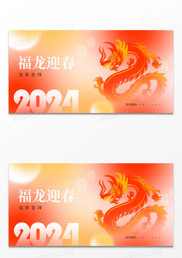 红色弥散风龙年福龙迎春2024龙年新年展板