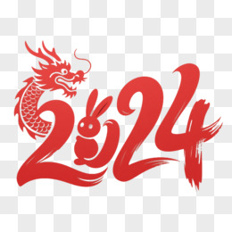 红2024龙兔剪纸艺术字