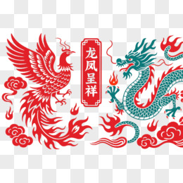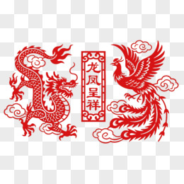红色剪纸龙凤呈祥节日元素
