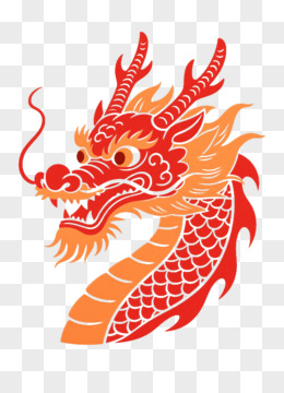 橙红中国龙龙头传统剪纸元素