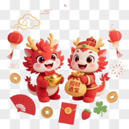 龙年新春2024红色剪纸小龙合成立体设计元素