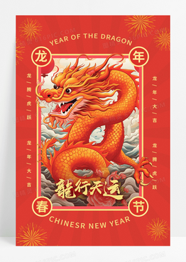红色喜庆国风2024龙年龙行天运春节节日宣传海报