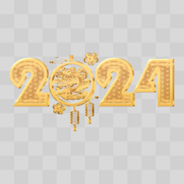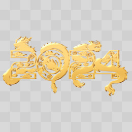 2024甲辰龙年剪纸数字艺术字金色立体设计