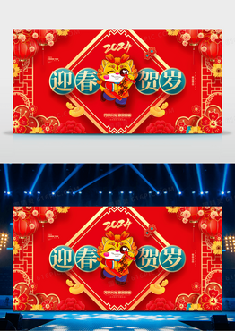 中国风红色2024龙年新年春节展板