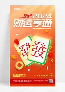 国潮风格渐变色财运亨通迎财神宣传海报迎财神手机宣传海报