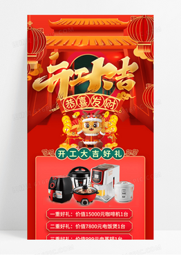 红色喜庆2024龙年开工大吉长图手机长图