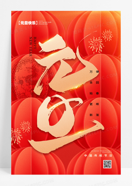 毛笔字风格红色元旦元旦宣传海报元旦海报2024元旦新年