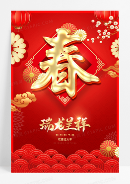 c4d红色龙年春节喜庆龙年大吉3d元素