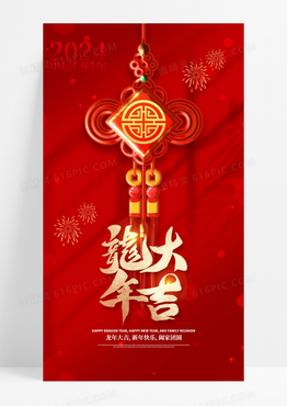 红色2024龙年中国结海报
