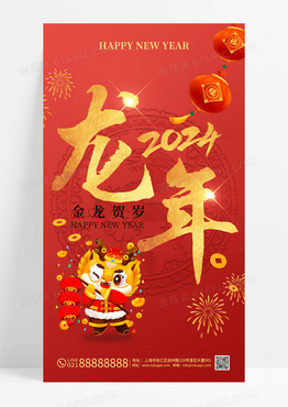 红色龙年新年书法剪纸龙手机宣传海报2024龙年新年