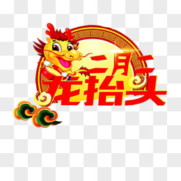 卡通手绘龙抬头耍龙打鼓小男孩免抠元素