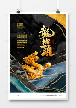 中国风鎏金二月二龙抬头节日宣传海报设计