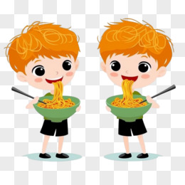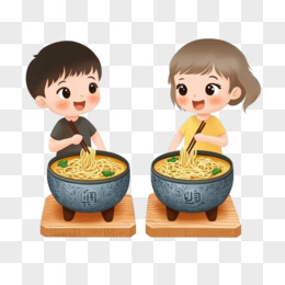 水彩画小女孩站在梯子上从大碗里挑龙须面免抠元素