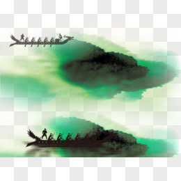 端午节传统活动赛龙舟绿色渐变剪影免抠元素