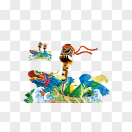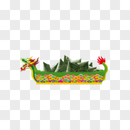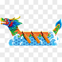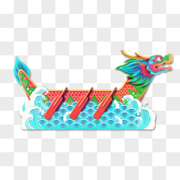 湖边龙舟粽子鲤鱼手绘浪花素彩网
