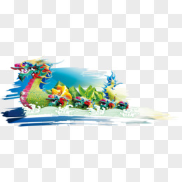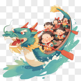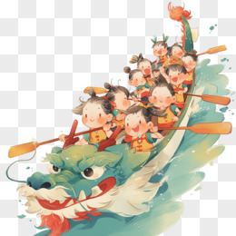 卡通插画划龙舟比赛免抠元素