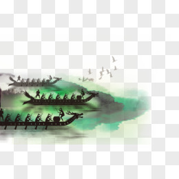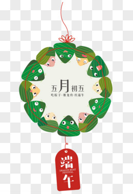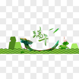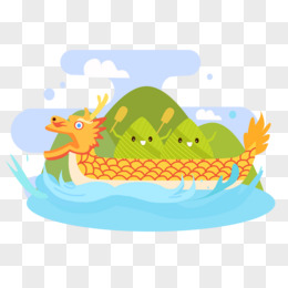 端午卡通可爱手绘绿色粽子赛龙舟素材