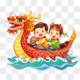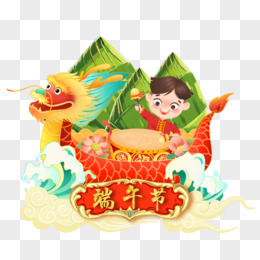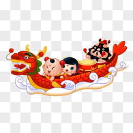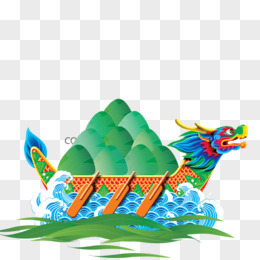 手绘拟人粽子划龙舟免抠元素