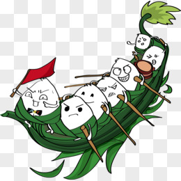 卡通手绘粽子划龙舟免抠素材