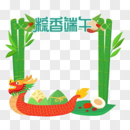 矢量龙舟粽香端午竹子边框素材