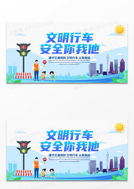 卡通红绿灯楼房剪影文明行车交通安全你我他展板