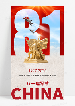 简约镂空数字雕塑81八一建军节98周年海报
