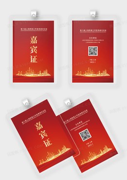 红色光效背景嘉宾证工作证参观证嘉宾证嘉宾参会证