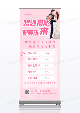 粉色手绘梦幻婚纱摄影职等你来影楼招聘x展架