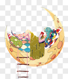 矢量月亮上的女孩