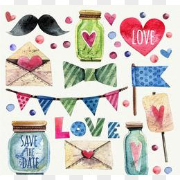 许愿瓶,婚礼,装饰物,水彩,LOVE
