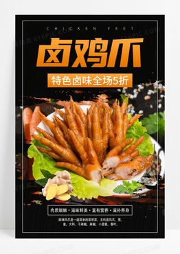黑色背景创意卤鸡爪餐饮美食活动促销海报