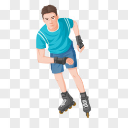手绘青少年玩轮滑免抠元素