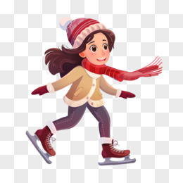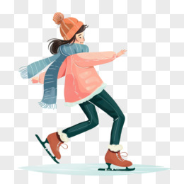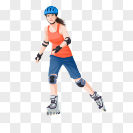 手绘女孩玩轮滑免抠元素
