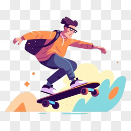 手绘男孩滑板轮滑运动免抠元素