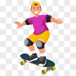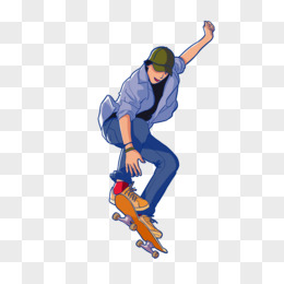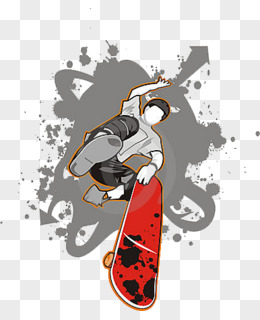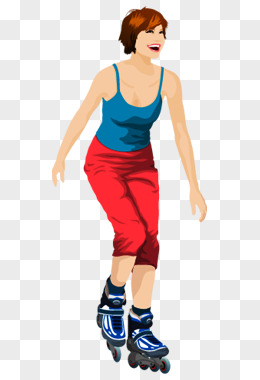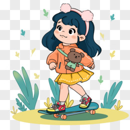 卡通手绘女孩在滑板上保持平衡免抠素材