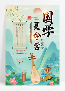 浅色国潮卡通国学夏令营海报设计