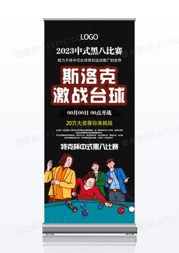 健身易拉宝2019斯洛克激战台球等你来挑战健身台球宣传黑色展架