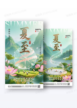 新中式夏至海报荷花丛中升起半透明节气罗盘海报组合