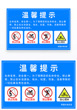 蓝色水深危险当心落水安全标识温馨提示卡