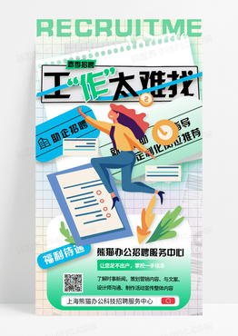 绿色小清新卡通春季招聘路牌插画手机宣传海报