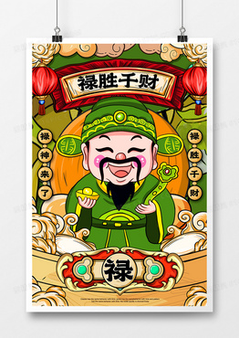 创意手绘国潮风新年禄神福禄寿喜系列海报设计