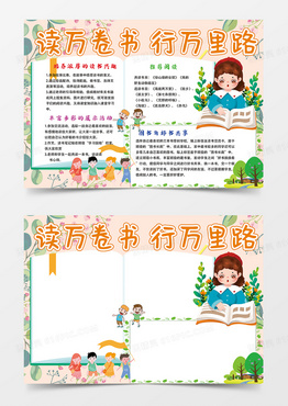 粉色卡通读万卷书行万里路六年级读书计划读书手抄报