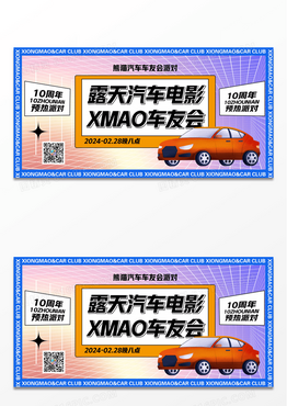 简约汽车露天汽车电影车友会展板设计