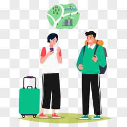 卡通手绘外国游客向警察叔叔问路免抠元素