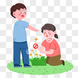 手绘卡通小朋友提醒不要摘花插画免抠元素