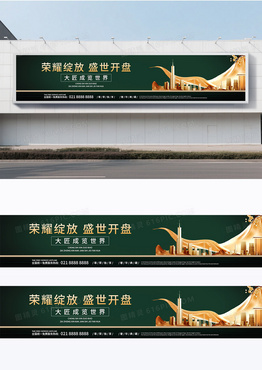 简约大气绿金奢华房地产行业宣传围栏房地产围挡